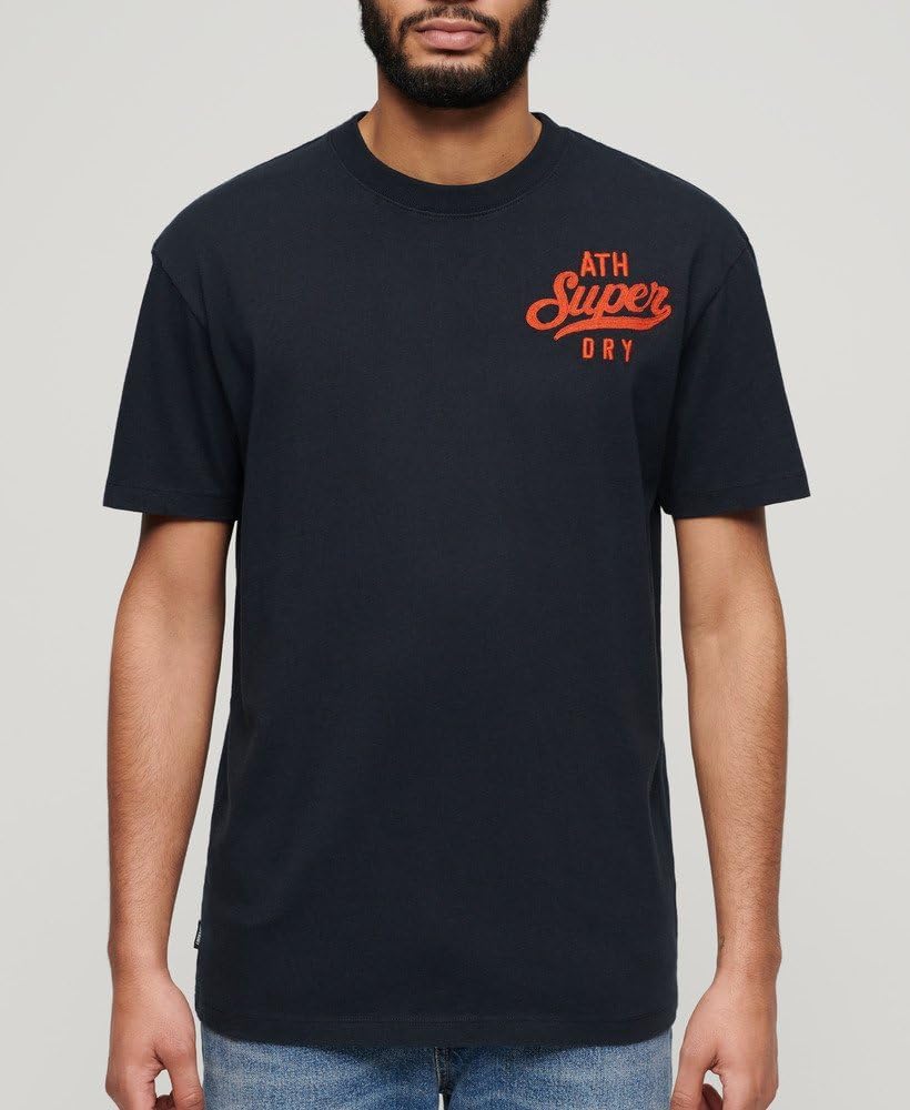 Maglietta Ricamata Superdry Uomo T-shirt Logo Eclisse Marina